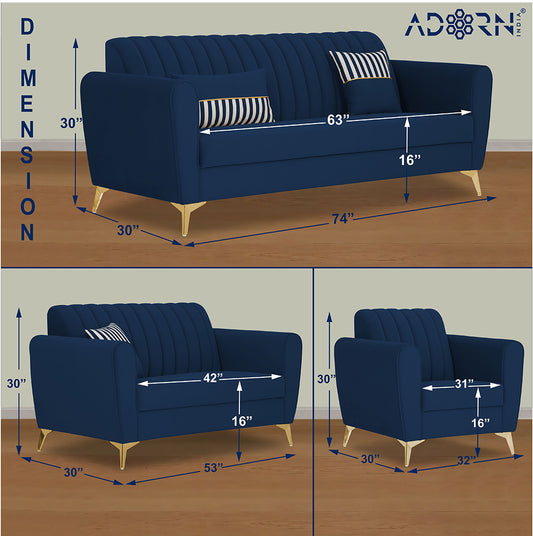 Adorn India Sofa Set blend modern design with plush comfort, featuring a versatile sofas that maximizes seating and style. Upholstered in premium fabric, they offer both elegance and durability, making them a standout addition to any contemporary home.