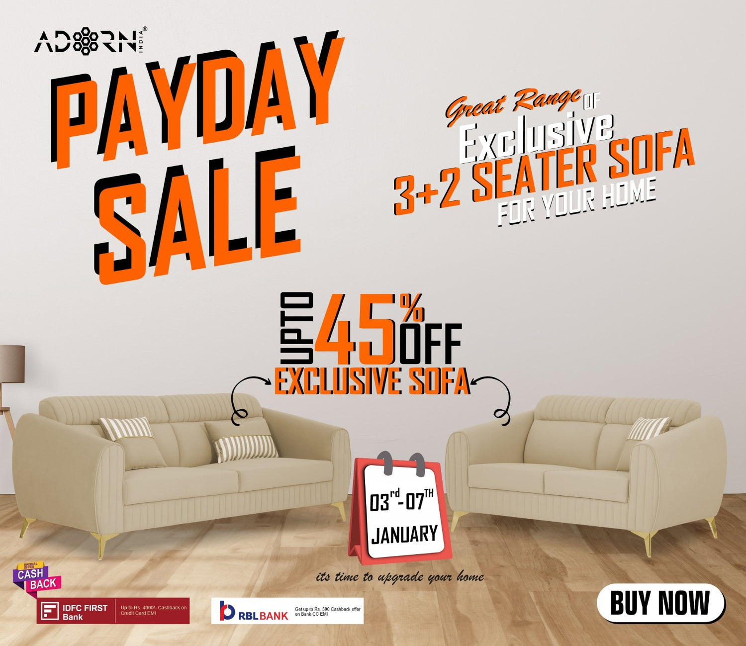 Adorn India Sofa Set blend modern design with plush comfort, featuring a versatile sofas that maximizes seating and style. Upholstered in premium fabric, they offer both elegance and durability, making them a standout addition to any contemporary home.