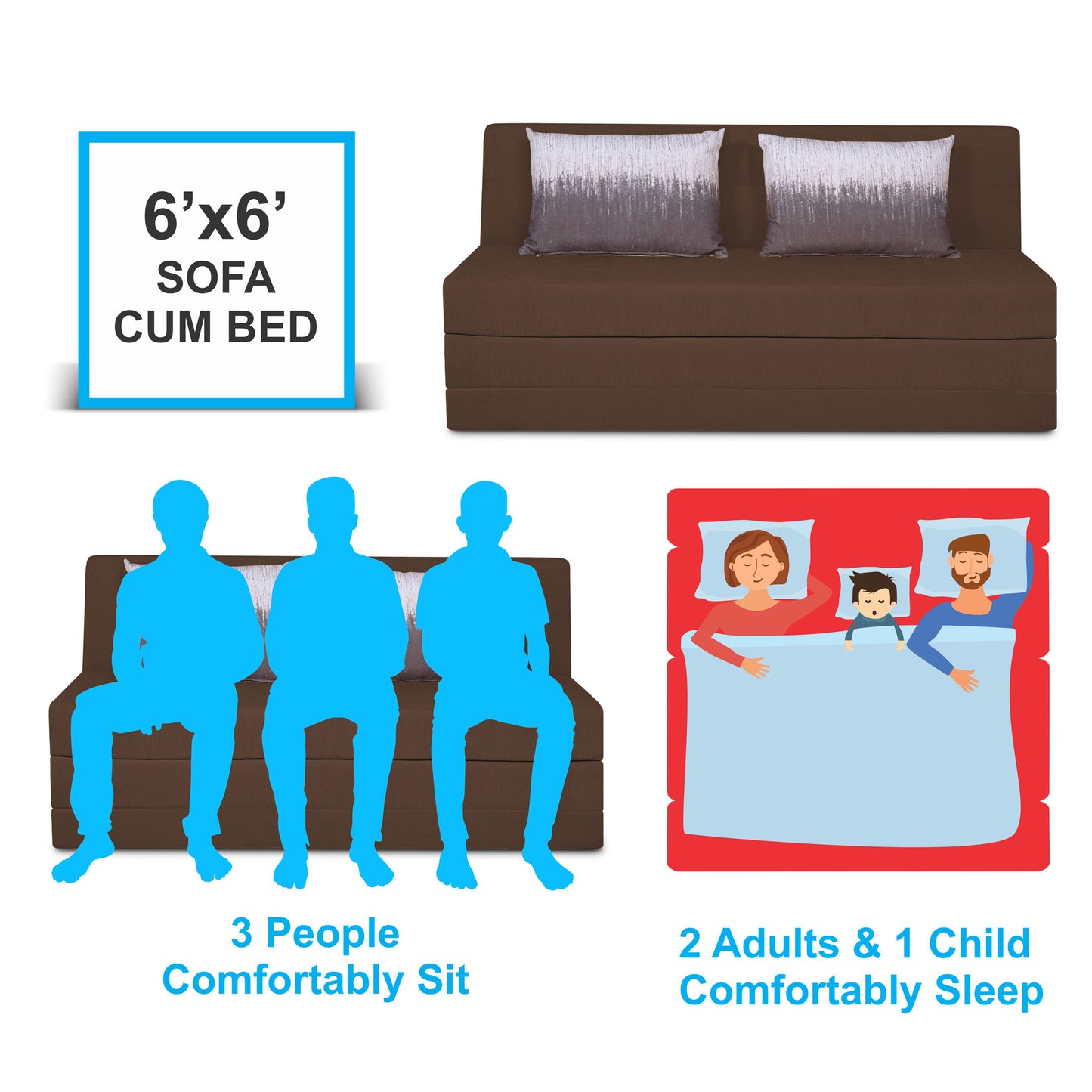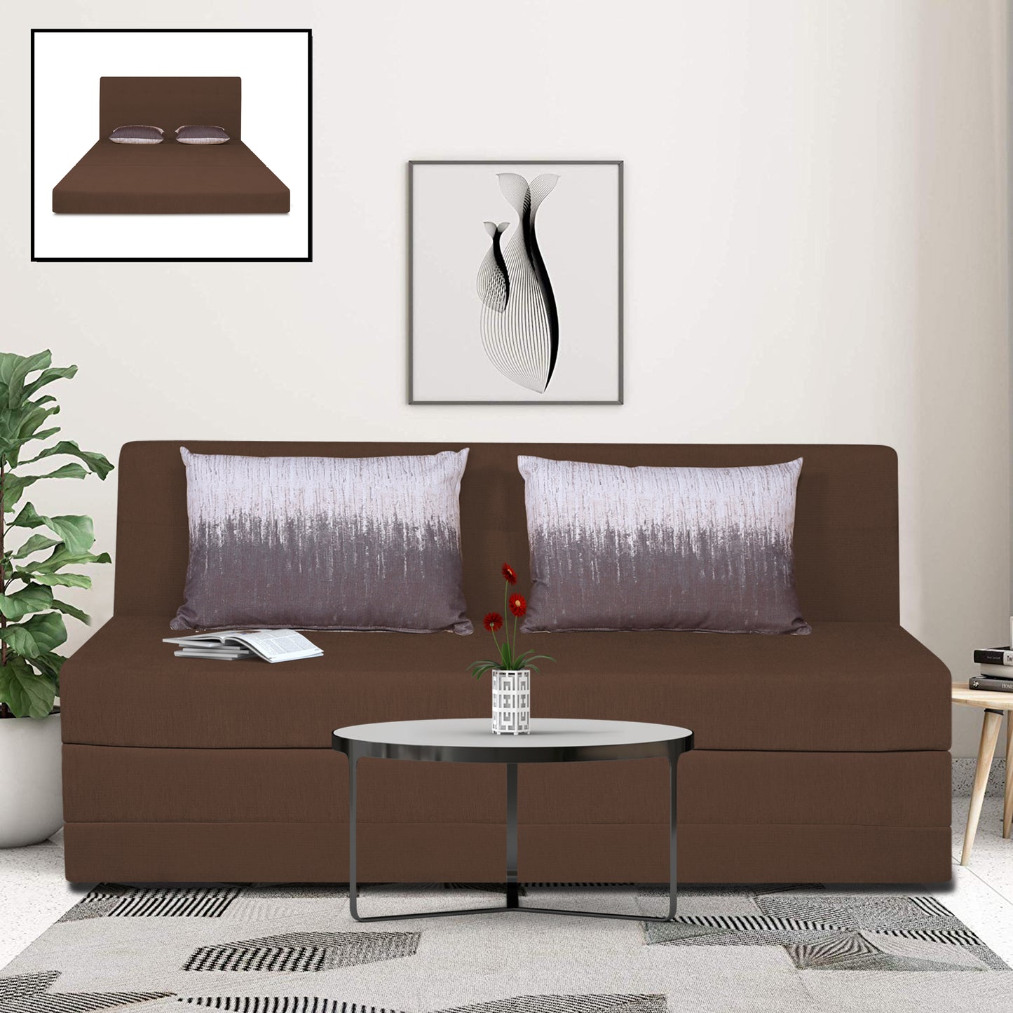 Adorn India Easy Highback Three Seater Sofa Cum Bed Wave 6' x 6' (Brown) (1 Year Warranty)